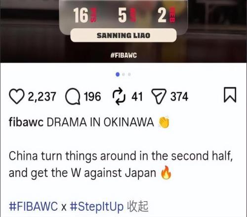 國際籃聯(lián)發(fā)布了一個推文,表示: