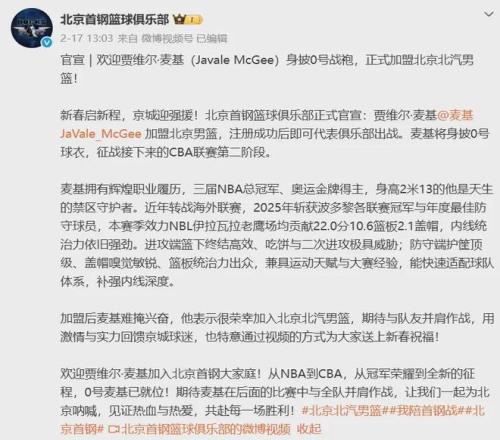 所以本來有多支CBA強(qiáng)隊(duì)都有意將麥基收入麾下,最終如上所述北京隊(duì)?wèi){借城市屬性與球隊(duì)實(shí)力等方面脫穎而出,當(dāng)然提供的薪資肯定也不差屬于頂級(jí)范圍。