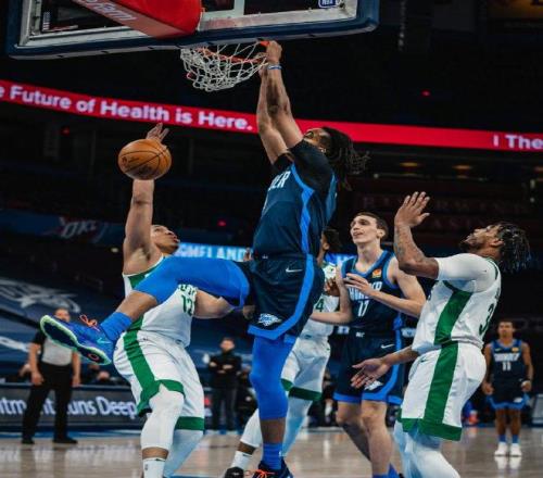 摩西-布朗,身高2米18的大中鋒,2019年的NBA落選秀,在開(kāi)拓者、雷霆、快船等多支球隊(duì)效力過(guò)。布朗20-21賽季在雷霆隊(duì)場(chǎng)均出戰(zhàn)21分鐘,可以得到8.6分8.9籃板1.1蓋帽,數(shù)據(jù)還可以,其中在對(duì)陣凱爾特人的比賽中拿到21分23籃板的大號(hào)兩雙。上賽季在獨(dú)行俠隊(duì)打了4場(chǎng)比賽,場(chǎng)均可以得到11.8分7.8籃板。休賽期和掘金隊(duì)簽下了一份訓(xùn)練營(yíng)合同,但隨后掘金隊(duì)裁掉了布朗。布朗大部分時(shí)間在NBA發(fā)展聯(lián)盟打球,在發(fā)展聯(lián)盟單場(chǎng)轟下過(guò)27分26籃板4蓋帽的恐怖數(shù)據(jù)。