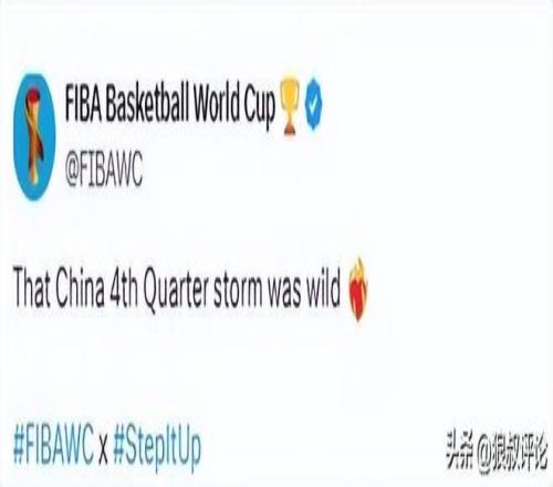 賽后,F(xiàn)IBA官方點(diǎn)贊中國(guó)男籃發(fā)文:“中國(guó)男籃在第四節(jié)打出的那波風(fēng)暴真是太猛了!”
