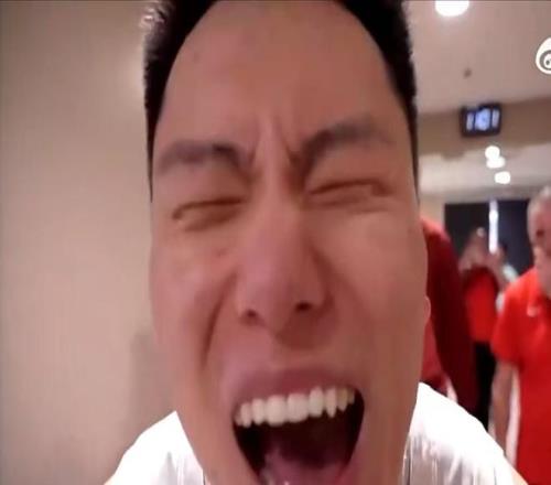 比賽結(jié)束之后,中國男籃眾將在更衣室里瘋狂慶祝,作為奇兵的李弘權(quán)沖著鏡頭怒吼,完全釋放了自己的情緒。
