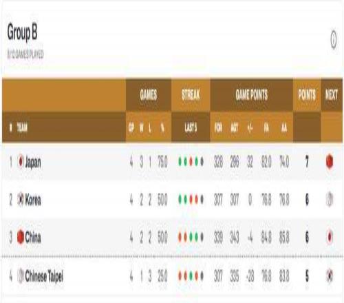 第二窗口期2場比賽打完,目前B組積分榜有了新變化。日本隊(duì)3勝1負(fù)穩(wěn)居第一,韓國隊(duì)2勝2負(fù)積6分,中國男籃同樣2勝2負(fù),卻因交鋒戰(zhàn)績0-2落后韓國,只能排在第3。