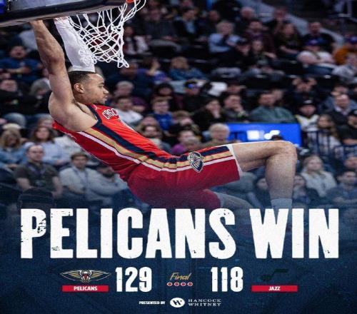 北京時(shí)間2月27日,NBA常規(guī)賽鵜鶘客場(chǎng)129-118戰(zhàn)勝爵士收獲3連勝,同時(shí)送給爵士4連敗。貝成為鵜鶘取勝頭號(hào)功臣,他...