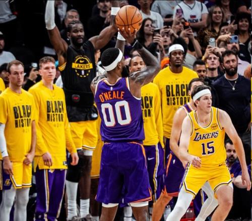 在本場比賽的最后時(shí)刻,詹姆斯補(bǔ)籃一度將比分扳平,在比賽最后還剩下22.8秒的時(shí)候,雙方戰(zhàn)成110平,太陽利用快速轉(zhuǎn)換,找到大空位的奧尼爾,隨后奧尼爾不負(fù)眾望,三分投進(jìn),只留給湖人0.9秒的時(shí)間,準(zhǔn)絕殺對(duì)手。在上一場面對(duì)魔術(shù)的比賽中,湖人被小溫德爾-卡特補(bǔ)籃準(zhǔn)絕殺。