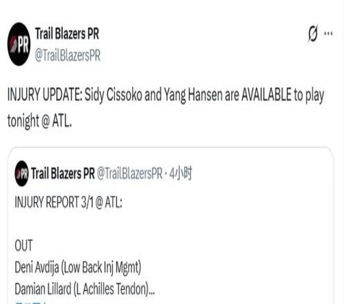 美媒預(yù)測隨著開拓者戰(zhàn)績走低,楊瀚森會在3月份得到更多上場機會,但前提顯然是他自己得保持健康,盡快從傷病中擺脫出來。