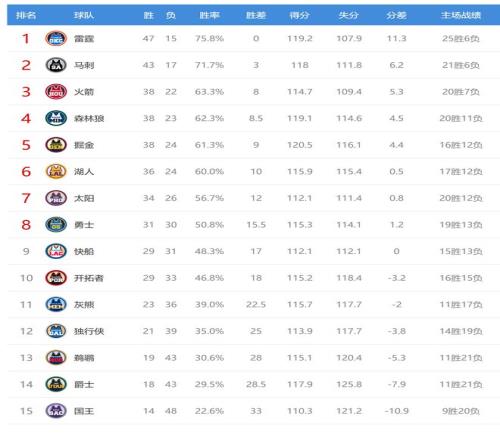 今日比賽后西部排名沒有變化,只是勝場差有所改變。