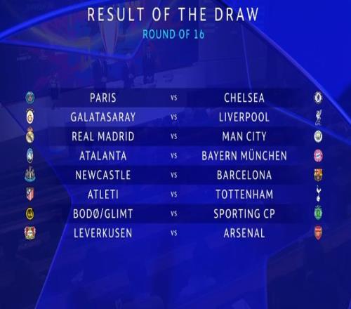 聯(lián)賽階段,包括阿森納,拜仁,利物浦,巴薩在內(nèi)的豪門球隊(duì)都拿到前八直接晉級,前八的球隊(duì)在抽簽當(dāng)中也位列種子隊(duì);淘汰賽附加賽的8支勝者將作為非種子隊(duì);種子隊(duì)將先客后主進(jìn)行比賽。在新規(guī)下,根據(jù)歐足聯(lián)的淘汰賽預(yù)設(shè)對陣路徑,通過淘汰賽附加賽晉級的8支球隊(duì)已經(jīng)確定了自己所處的位置,已經(jīng)確定的四分之一區(qū)安排中,巴黎、加拉塔薩雷同區(qū),皇馬、亞特蘭大同區(qū),紐卡、馬競同區(qū),博德閃耀、勒沃庫森同區(qū)。