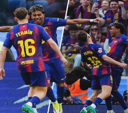 比賽開始后,2隊(duì)都踢得較為沉悶,場面上并沒有出現(xiàn)太多的機(jī)會(huì);直到比賽強(qiáng)度逐漸成型,巴薩的優(yōu)勢便開始體現(xiàn)。第27分鐘,費(fèi)爾明中線精準(zhǔn)卡位斷球后就地送出直塞,亞馬爾迅速啟動(dòng)反越位得球形成單刀面對門將低射遠(yuǎn)角打破僵局,1:0!