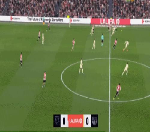 易邊再戰(zhàn)兩隊依然是對攻之勢,開場2分鐘,巴薩左路推進,拉什福德禁區(qū)前沿大力兜射,門將西蒙奮力將球撲出。第52分鐘,畢爾巴鄂競技左路快攻也制造機會,納瓦羅禁區(qū)前沿擺脫防守送出精妙直塞,桑切特反越位成功突入禁區(qū)接球獲得半單刀機會,只是他往前調(diào)整轉(zhuǎn)身掃射沒打上力量,門將加西亞穩(wěn)穩(wěn)將球撲住。第67分鐘,巴薩左路反擊,佩德里45度角處拿球內(nèi)切擺脫防守后精妙斜塞右側(cè),畢爾巴鄂競技后防漏人,無人防守的亞馬爾禁區(qū)內(nèi)從容接球,橫切調(diào)整2步后左腳大力兜射,皮球擊中遠端門柱內(nèi)側(cè)彈入網(wǎng)窩,巴薩1:0打破僵局。之后畢爾巴鄂競技雖然攻勢不弱,但他們就是無力把握機會,最終巴薩客場1:0險勝。