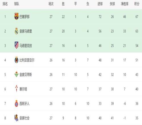 截至目前,27輪過后,巴薩22勝1平4負(fù)拿到67分,在積分榜上以4分的優(yōu)勢領(lǐng)跑。不過盡管如此,巴薩在西甲還是不能松懈,因為后面11輪比賽,他們還有2場惡戰(zhàn)要打,萬一這2場比賽都拿不到3分,巴薩隨時會丟掉冠軍。
