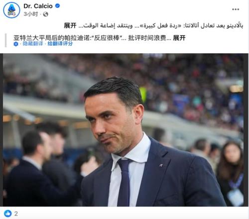 攀談起來,我才知道,我身邊的這位同行果然是自媒體人,他來自伊拉克,在Facebook上運(yùn)營(yíng)一個(gè)名為“Dr.Calcio”的個(gè)人頻道。他的個(gè)人頻道報(bào)道的都是意甲相關(guān)內(nèi)容,平臺(tái)認(rèn)證是“運(yùn)動(dòng)博主”,簡(jiǎn)介則寫著:“一個(gè)關(guān)于意大利足球的體育主頁(yè),涵蓋了所有與意大利足球相關(guān)的內(nèi)容。”