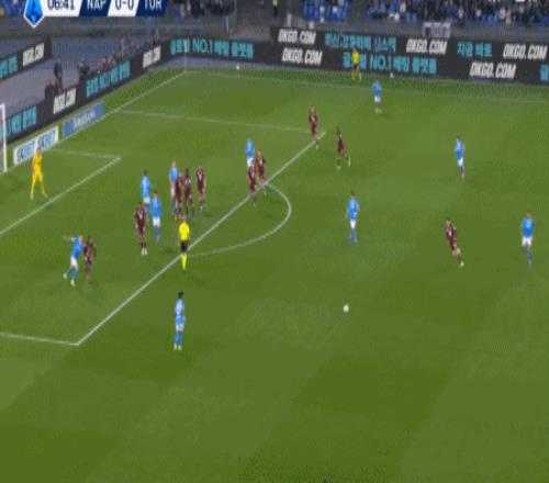第7分鐘,斯皮納佐拉助攻,桑托斯內(nèi)切低射近角破門,那不勒斯1-0都靈