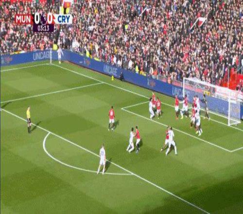 第4分鐘,布倫南·約翰遜開(kāi)出左側(cè)角球,曼聯(lián)中衛(wèi)約羅看球不看人,被水晶宮中衛(wèi)拉克魯瓦一個(gè)急停擺脫。后者原地起跳將球頂入遠(yuǎn)角。0比1。