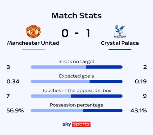 曼聯(lián)此役上半場表現(xiàn)糟糕,開場196秒就被丟球。比賽的前30分鐘,曼聯(lián)只有1次射門,在對手禁區(qū)內(nèi)只有3次觸球,預(yù)期進(jìn)球0.01,這是曼聯(lián)本賽季英超前30分鐘最低值。