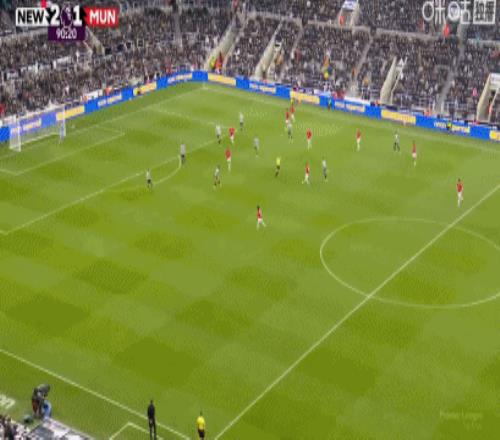 在英超第29輪紐卡斯?fàn)柭?lián)vs曼聯(lián)的比賽中,上半場雙方戰(zhàn)成1-1平。下半場臨近傷停補時,紐卡前鋒奧蘇拉在本方后場斷球,回敲給特里皮爾后,果斷前插。奧蘇拉后沿右路長途奔襲,內(nèi)切連續(xù)晃過兩名曼聯(lián)球員后找到角度,兜射遠角破門,讓拉門斯無可奈何。