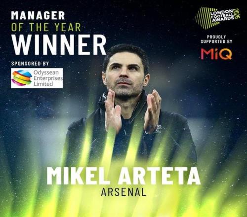 據(jù)倫敦足球獎官方消息,阿森納中場賴斯當(dāng)選英超年度最佳球員,阿爾特塔當(dāng)選英超年度最佳主帥,頒獎典禮將于英國當(dāng)...