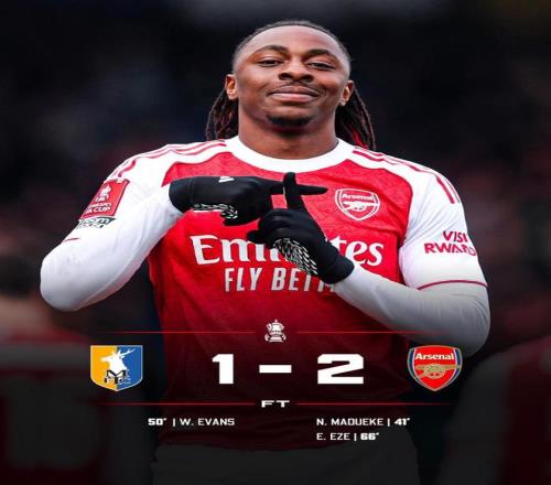 僅僅過了3分鐘,埃澤禁區(qū)前沿接球后果斷起腳抽射,皮球貼地鉆入遠角,阿森納2-1再次取得領(lǐng)先。最終,槍手最終2-1淘汰曼斯菲爾德,順利挺進足總杯八強。