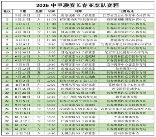 長(zhǎng)春市因承辦2027年第33屆世界大學(xué)生冬季運(yùn)動(dòng)會(huì),長(zhǎng)春體育中心體育場(chǎng)(南嶺)將進(jìn)行施工改造。長(zhǎng)春亞泰新賽季前4個(gè)主場(chǎng)將移至長(zhǎng)春經(jīng)開(kāi)體育中心體育場(chǎng)。6月13日開(kāi)始,其余11個(gè)主場(chǎng)將在長(zhǎng)春奧林匹克公園體育場(chǎng)進(jìn)行。