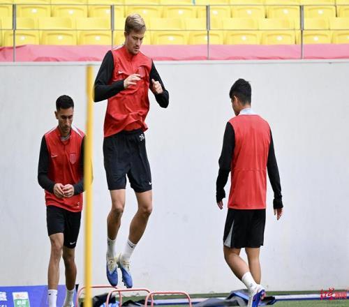 ▲成都蓉城隊員正在進行賽前踩場訓(xùn)練